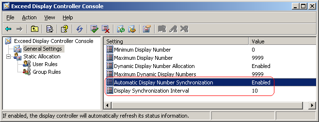 jeweiligen Exceed-Instanz arbeitet.Verantwortlich für die Verwaltung der Display-Nummern ist der Dienst "Hummingbird Exceed Display Controller". Tip: Unter Umständen kann dieser Dienst aber das Beenden von Exceed-Instanzen nicht erkennen. Das kommt insbesondere bei Exceed als "Published Application" vor, wenn am Ende der Session exceed.exe mit einem Kill-Befehl beendet wird. Bemerkbar macht sich dies dadurch, dass die Exceed-Sitzungen immer höhere Display-Nummern erhalten, was auf die Dauer zwangsläufig zu Problemen führt. Eine Ad-Hoc-Behebung dieses Problems ist: Exceed-Sessions beenden » Dienst "Hummingbird Exceed Display Controller" stoppen » Snapshot.HumTable löschen. Der Dienst wird dann beim ersten Start von Exceed wieder gestartet und schreibt die Datei Display Snapshot.HumTable neu. Natürlich gibt es eine Reihe Optionen, mit denen die Verteilung der Display-Nummern beeinflusst werden kann. Diese sind in der Datei